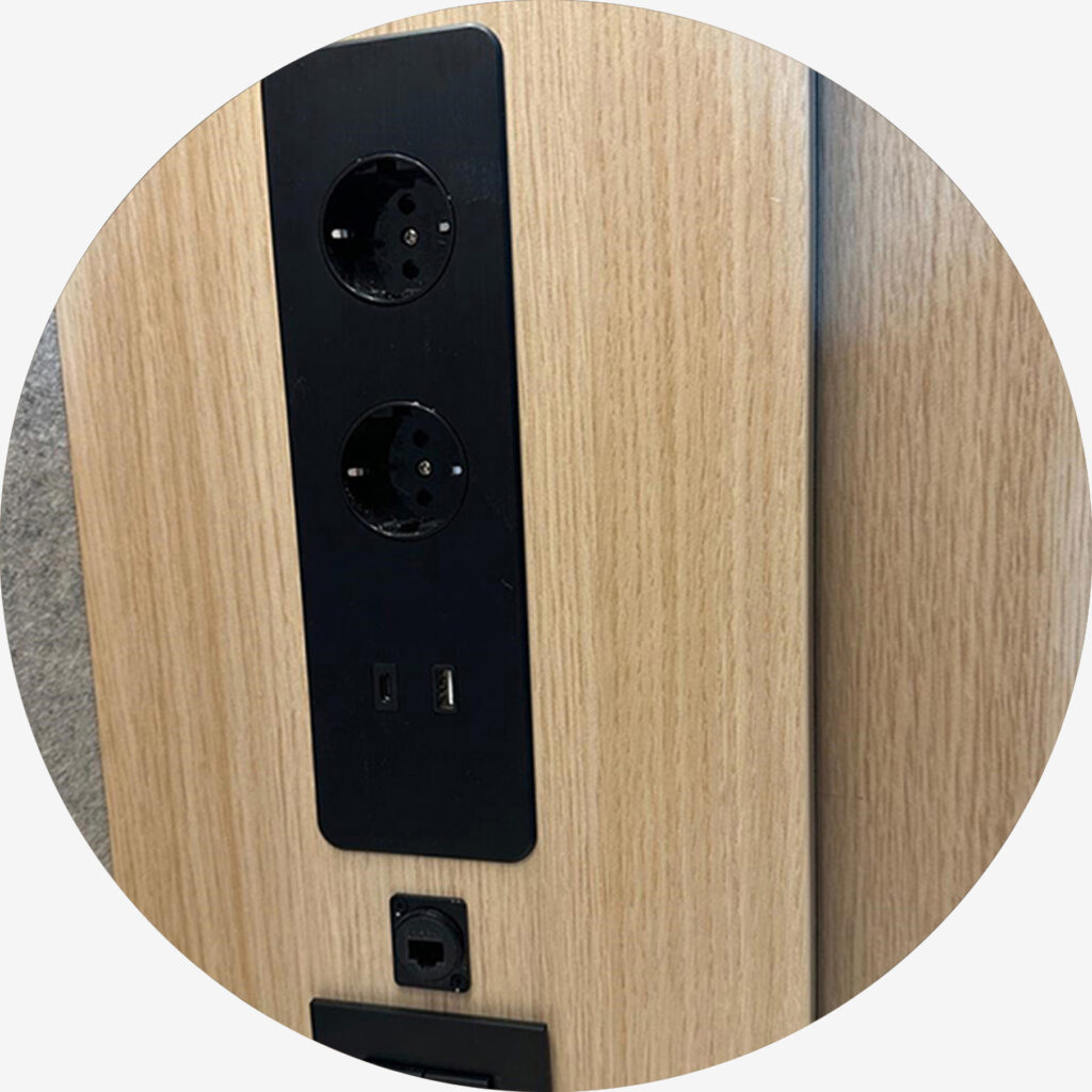 Entregada montada con asiento/mesa Con conexión 2x230V + USB + USBC + RJ45